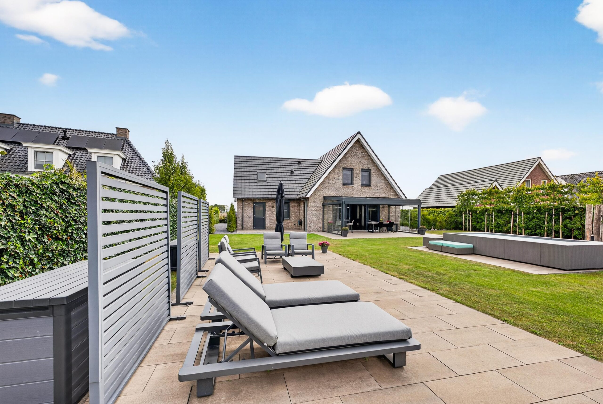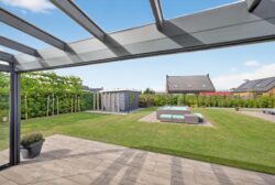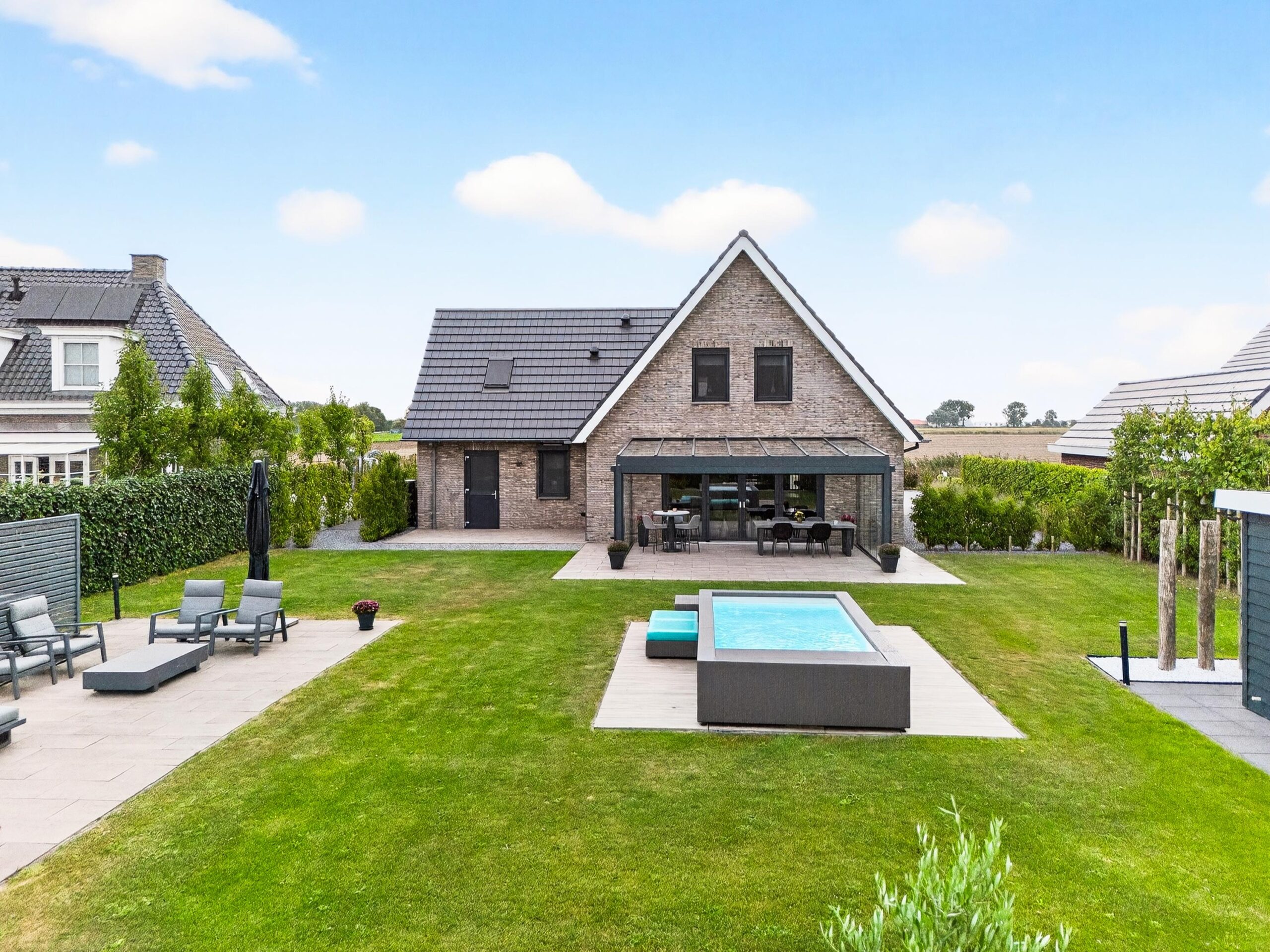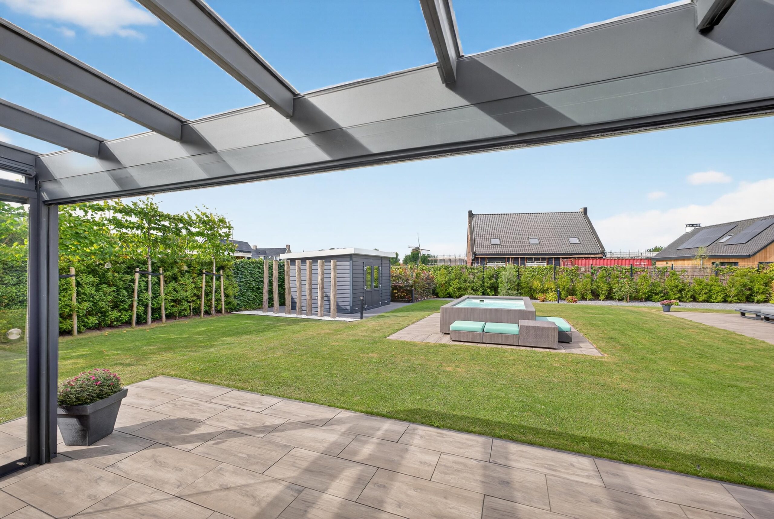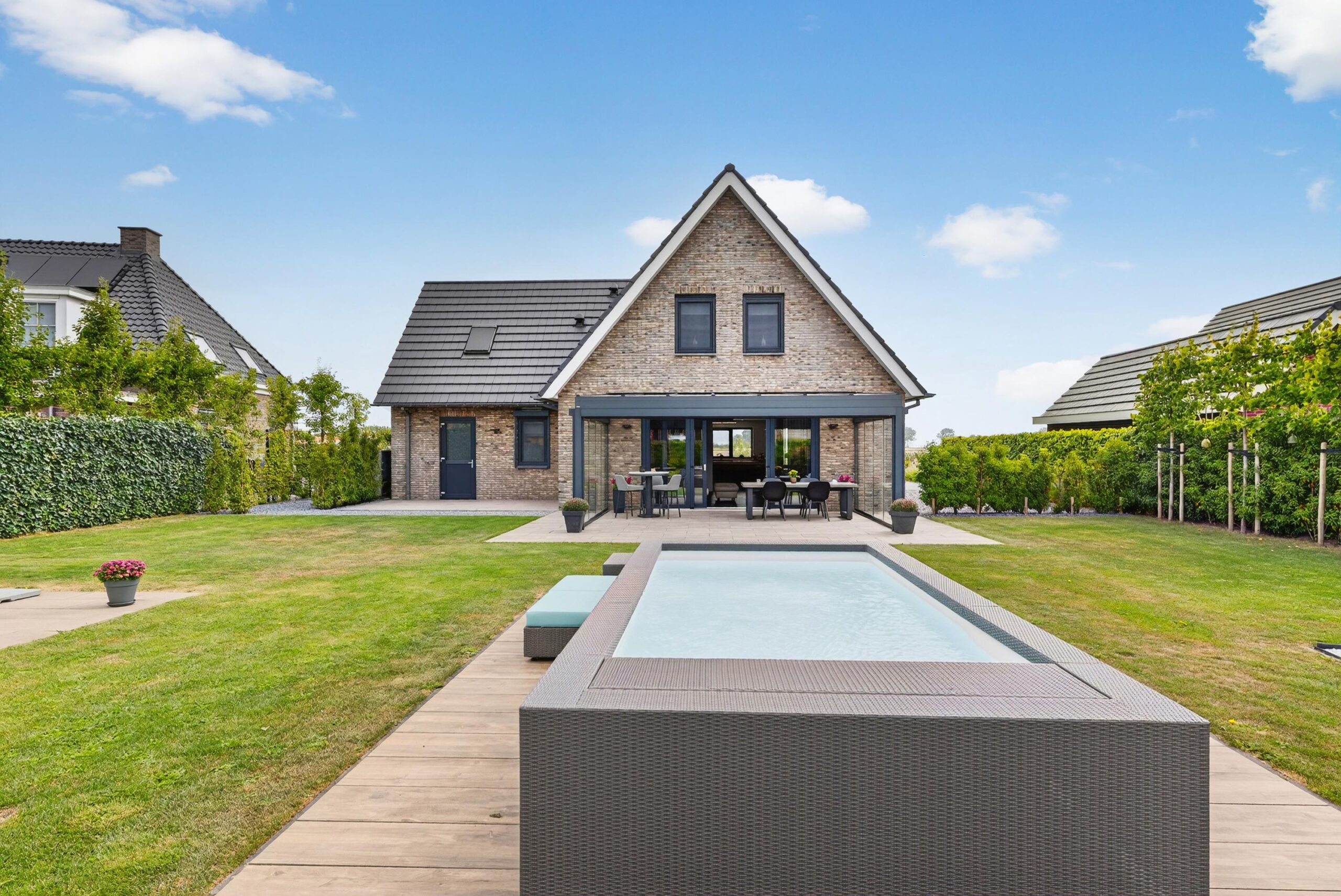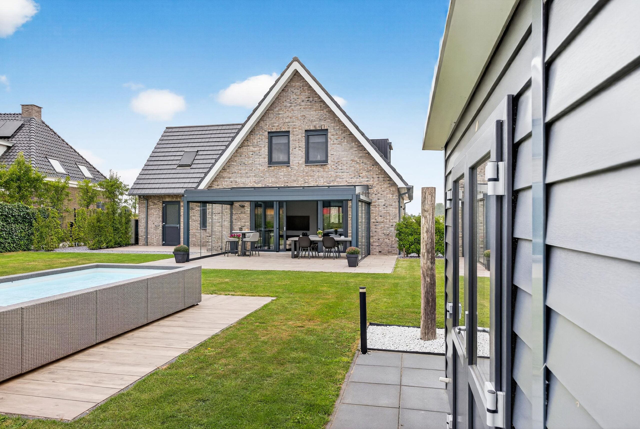 Aan de voorzijde is er voldoende ruimte om uw auto(‘s) comfortabel op eigen terrein te parkeren. De achtertuin, op het zonnige zuiden gelegen, is een heerlijke plek met een uitnodigend zwembad en een ruim zonneterras. Het privé-zwembad biedt ultiem comfort, ontspanning en plezier op elk moment van de dag. Direct grenzend aan de woning bevindt zich een luxe overkapping met elektrisch bedienbare zonwering, ideaal om beschut van de zon te genieten. Daarnaast is het een charmante tuinkamer, perfect om in het vroege voorjaar de eerste zonnestralen te vangen. Achterin de tuin staat een praktische berging voor extra opbergruimte.