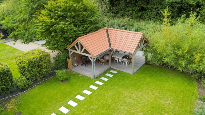 De ruime oprit geeft voldoende ruimte om je auto(‘s) op eigen terrein te parkeren. Middels een poort is de oprit afgescheiden van de zij- en achtertuin. Één van de grootste pluspunten van deze woning is de royale en goed onderhouden tuin. De achtertuin ligt op het westen en biedt voldoende ruimte voor de kinderen om te spelen, om te tuinieren, te loungen of te vertoeven in zowel klein als groot gezelschap. Bij het eerste voorjaarszonnetje kan je al lekker buiten zitten. Terwijl je ontspant in de zachte zonnestralen, wordt je getrakteerd op een vrolijk vogelconcert dat de natuur tot leven brengt. Een perfecte plek om volledig tot rust te komen en even te ontsnappen aan de dagelijkse drukte. Ben je liever actief buiten bezig en houdt je ervan om je eigen groenten en fruit te kweken? Een moestuin betekent een plek van voldoening. Achter in te tuin staat een fantastische overkapping welke grenst aan water en groen. Heerlijke avonden zijn hier gegarandeerd. Daarnaast zijn er ook een houten berging en garage beschikbaar.
