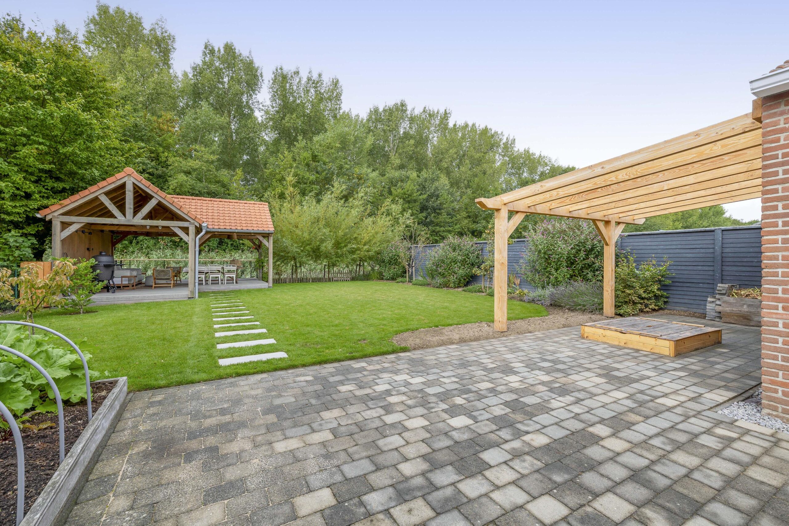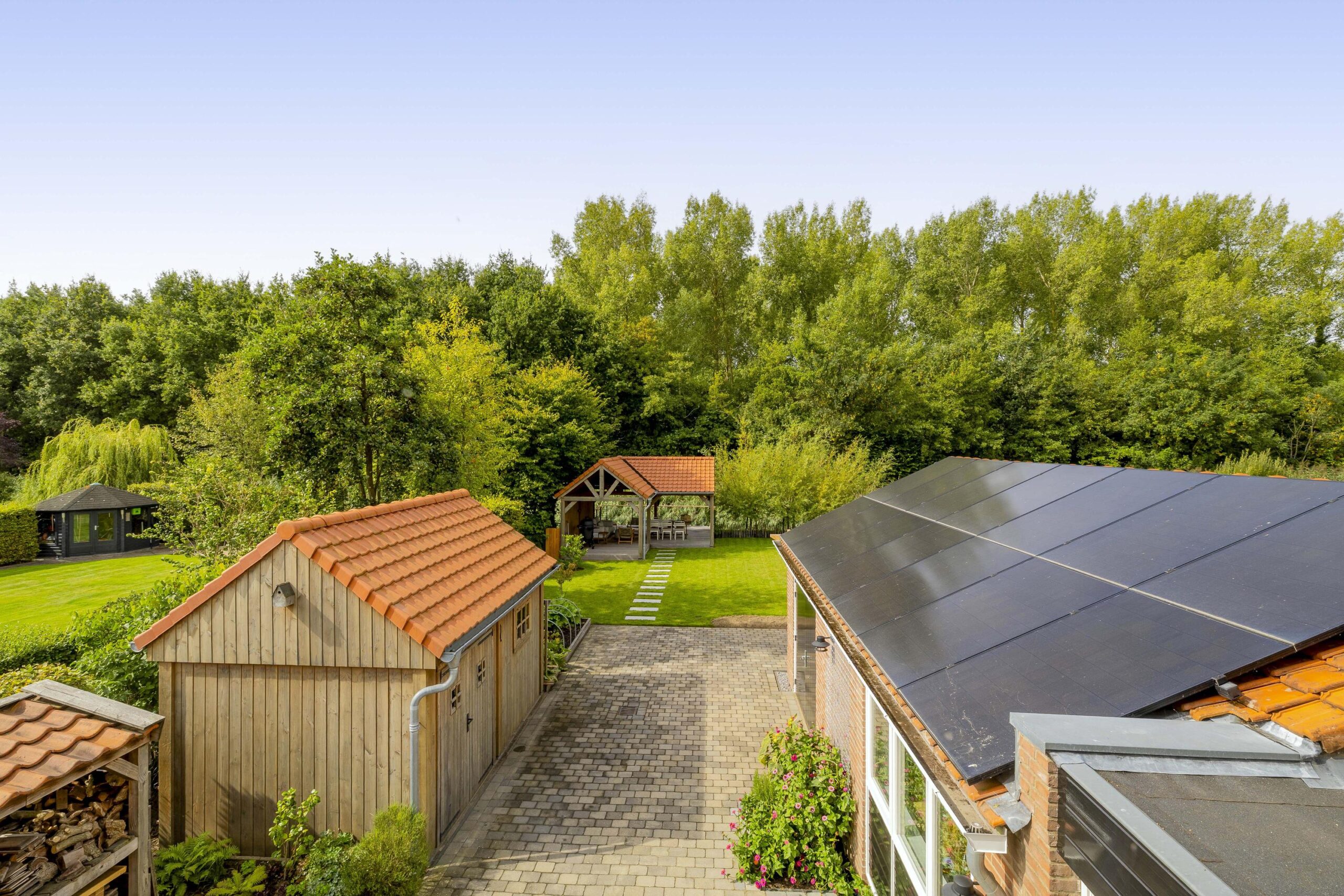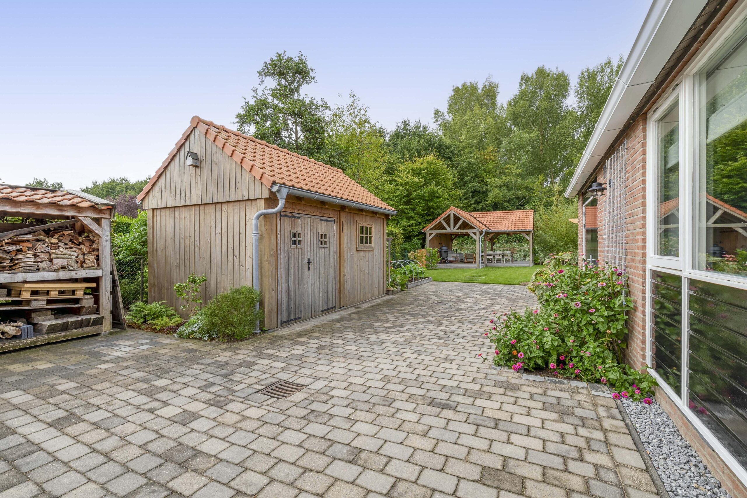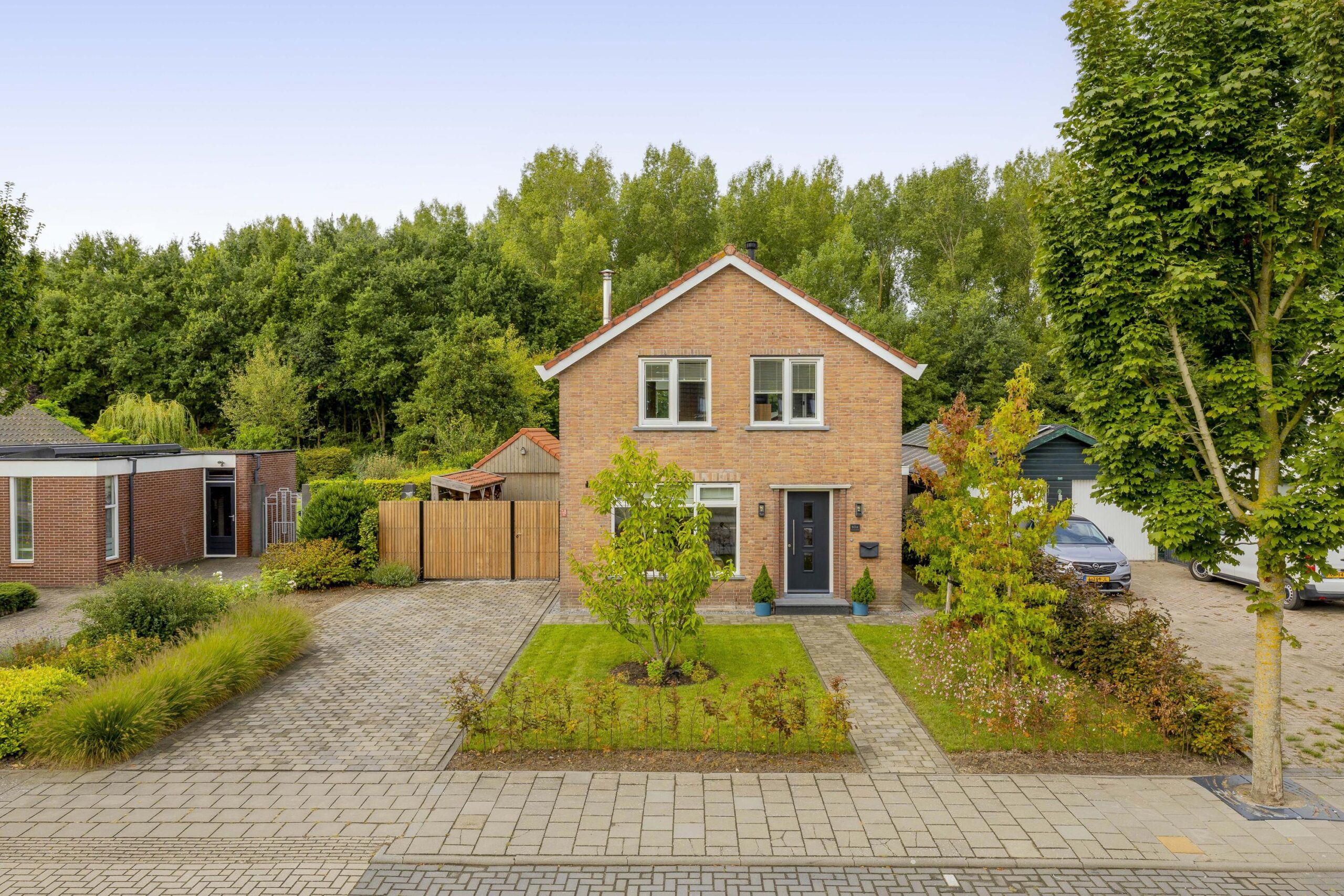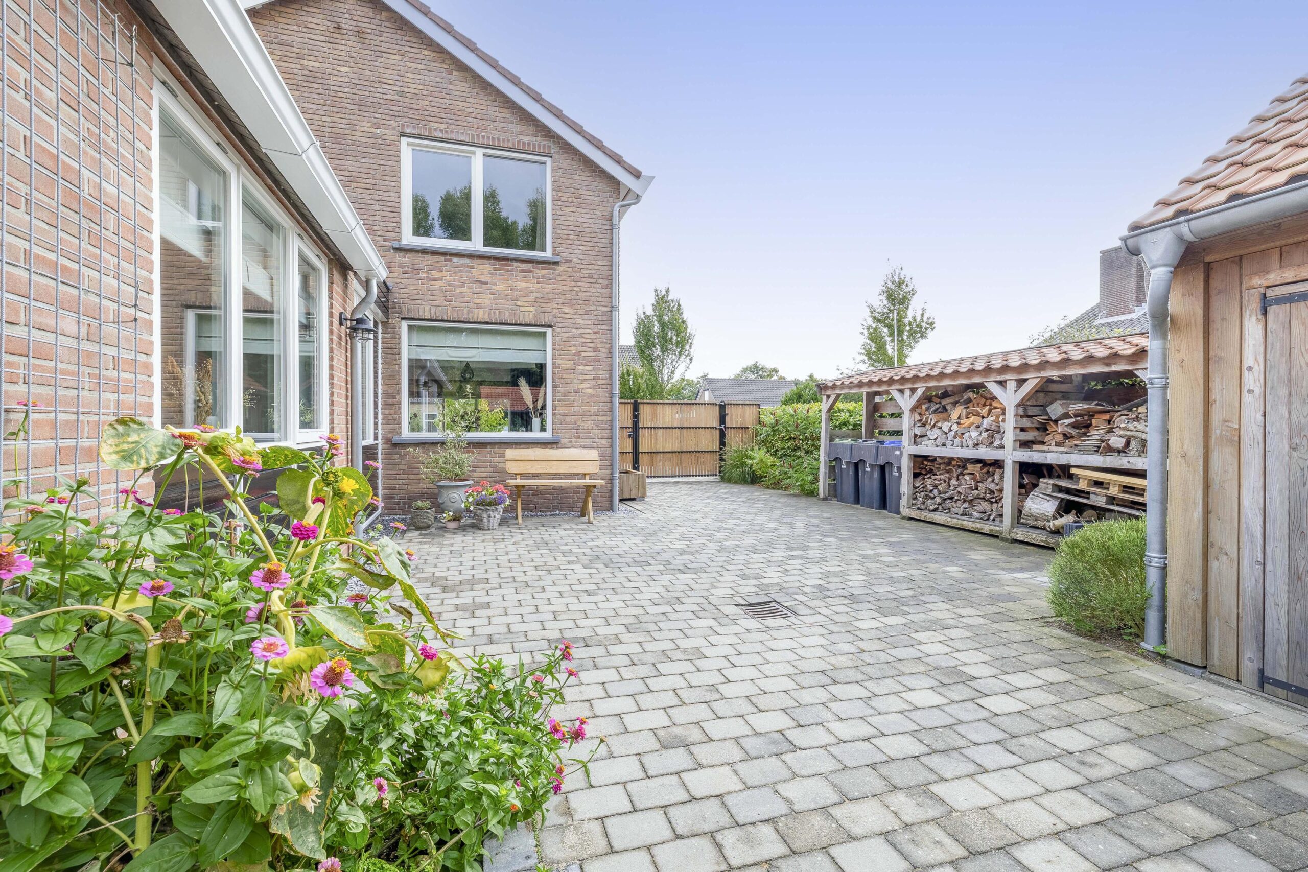 De ruime oprit geeft voldoende ruimte om je auto(‘s) op eigen terrein te parkeren. Middels een poort is de oprit afgescheiden van de zij- en achtertuin. Één van de grootste pluspunten van deze woning is de royale en goed onderhouden tuin. De achtertuin ligt op het westen en biedt voldoende ruimte voor de kinderen om te spelen, om te tuinieren, te loungen of te vertoeven in zowel klein als groot gezelschap. Bij het eerste voorjaarszonnetje kan je al lekker buiten zitten. Terwijl je ontspant in de zachte zonnestralen, wordt je getrakteerd op een vrolijk vogelconcert dat de natuur tot leven brengt. Een perfecte plek om volledig tot rust te komen en even te ontsnappen aan de dagelijkse drukte. Ben je liever actief buiten bezig en houdt je ervan om je eigen groenten en fruit te kweken? Een moestuin betekent een plek van voldoening. Achter in te tuin staat een fantastische overkapping welke grenst aan water en groen. Heerlijke avonden zijn hier gegarandeerd. Daarnaast zijn er ook een houten berging en garage beschikbaar.