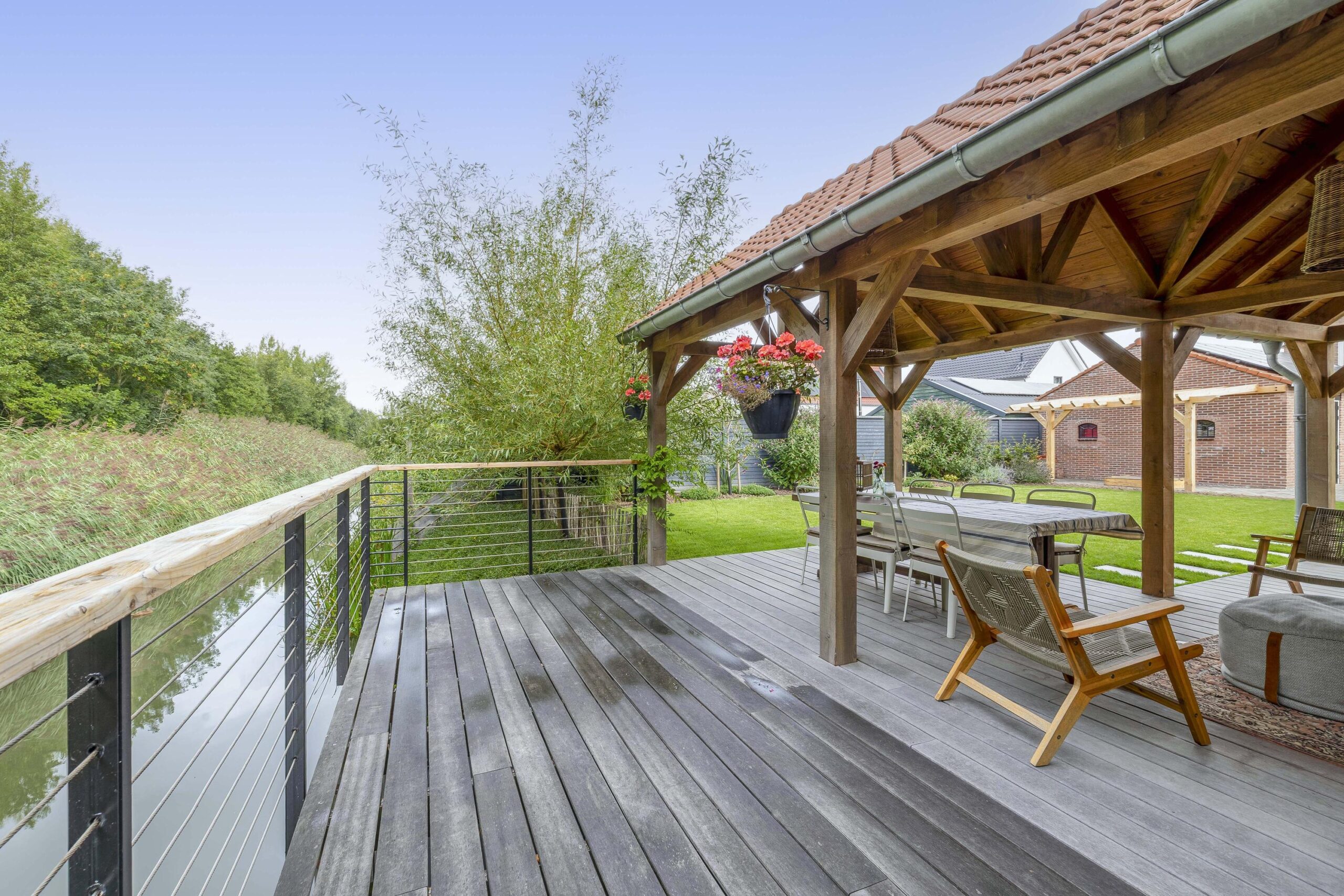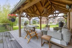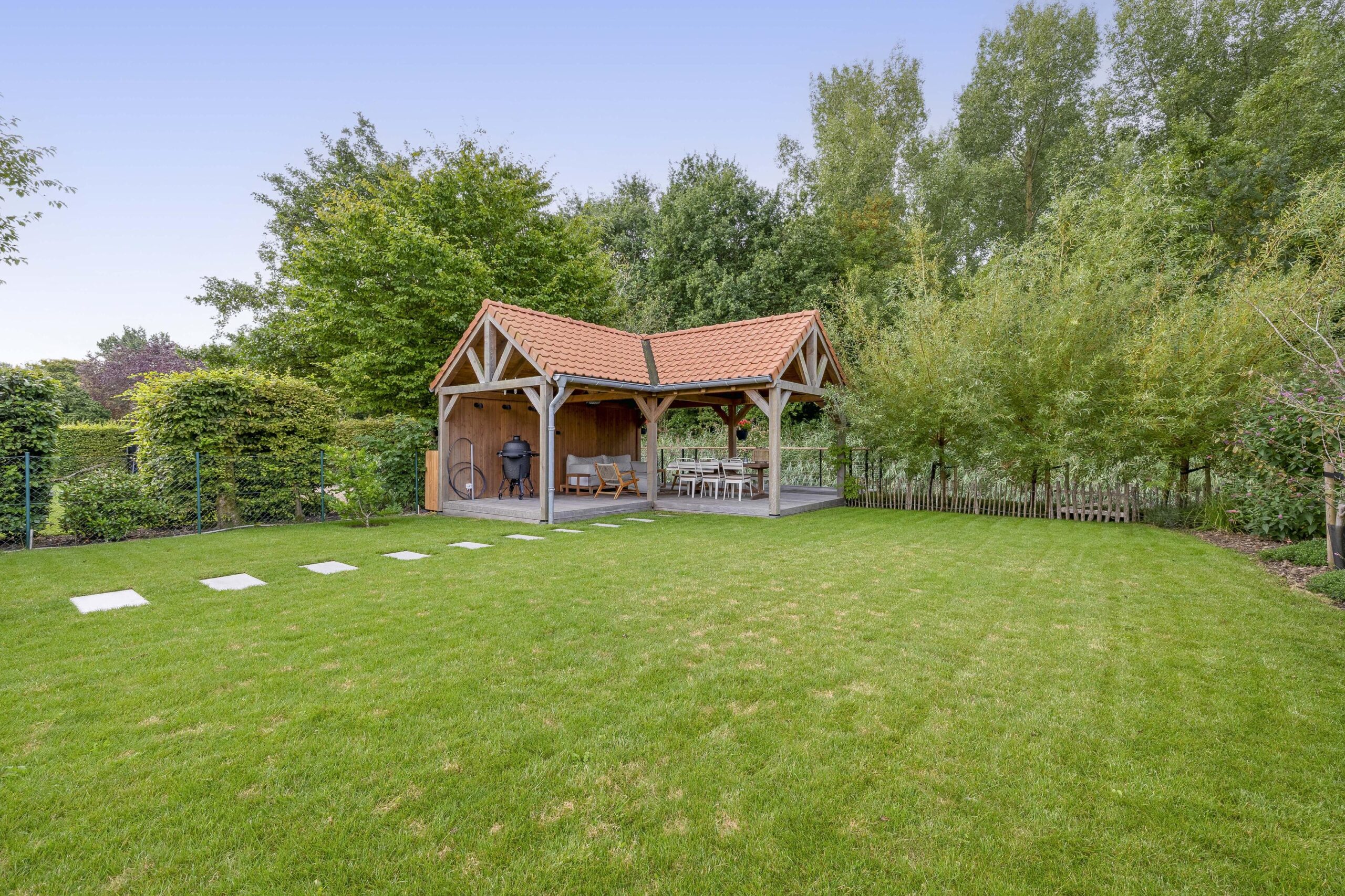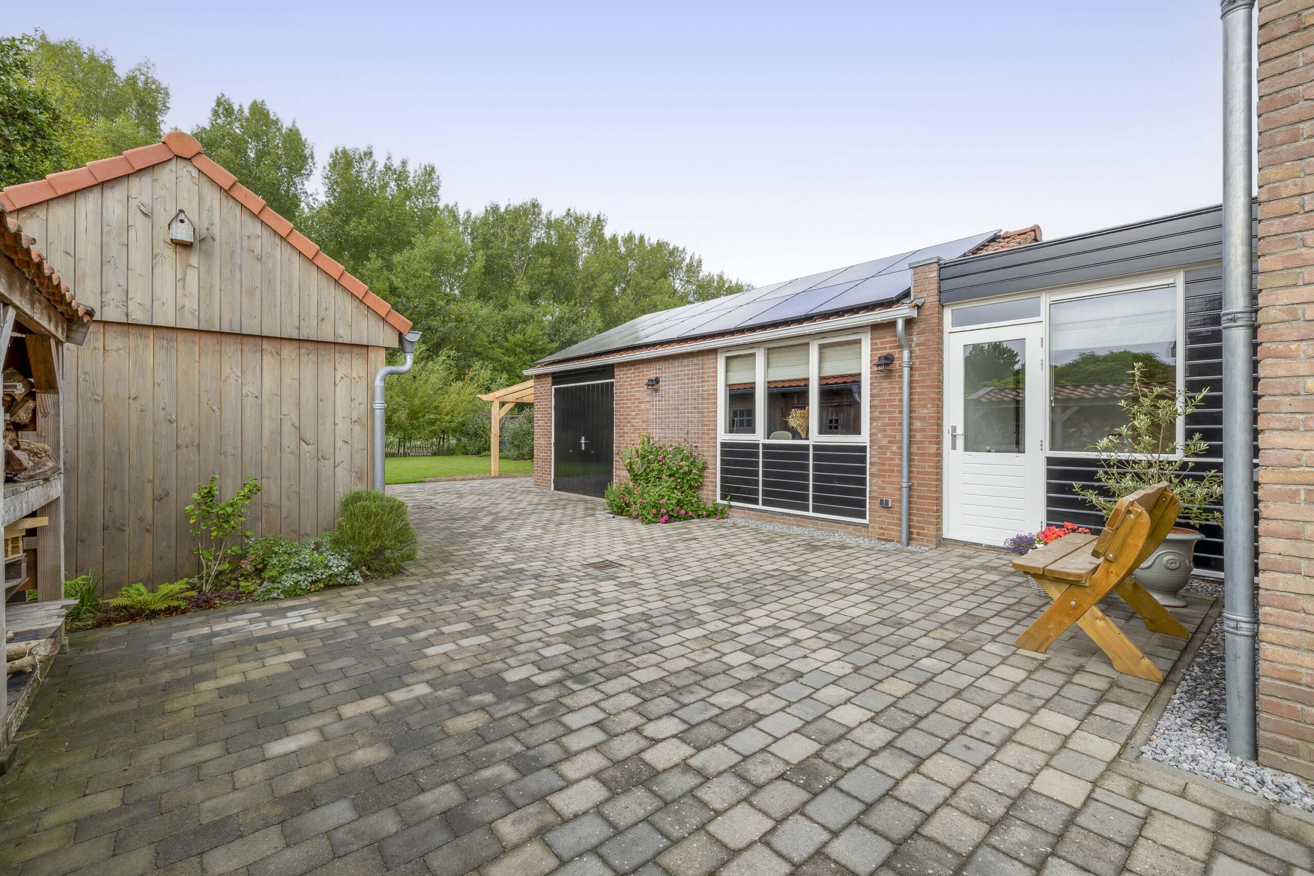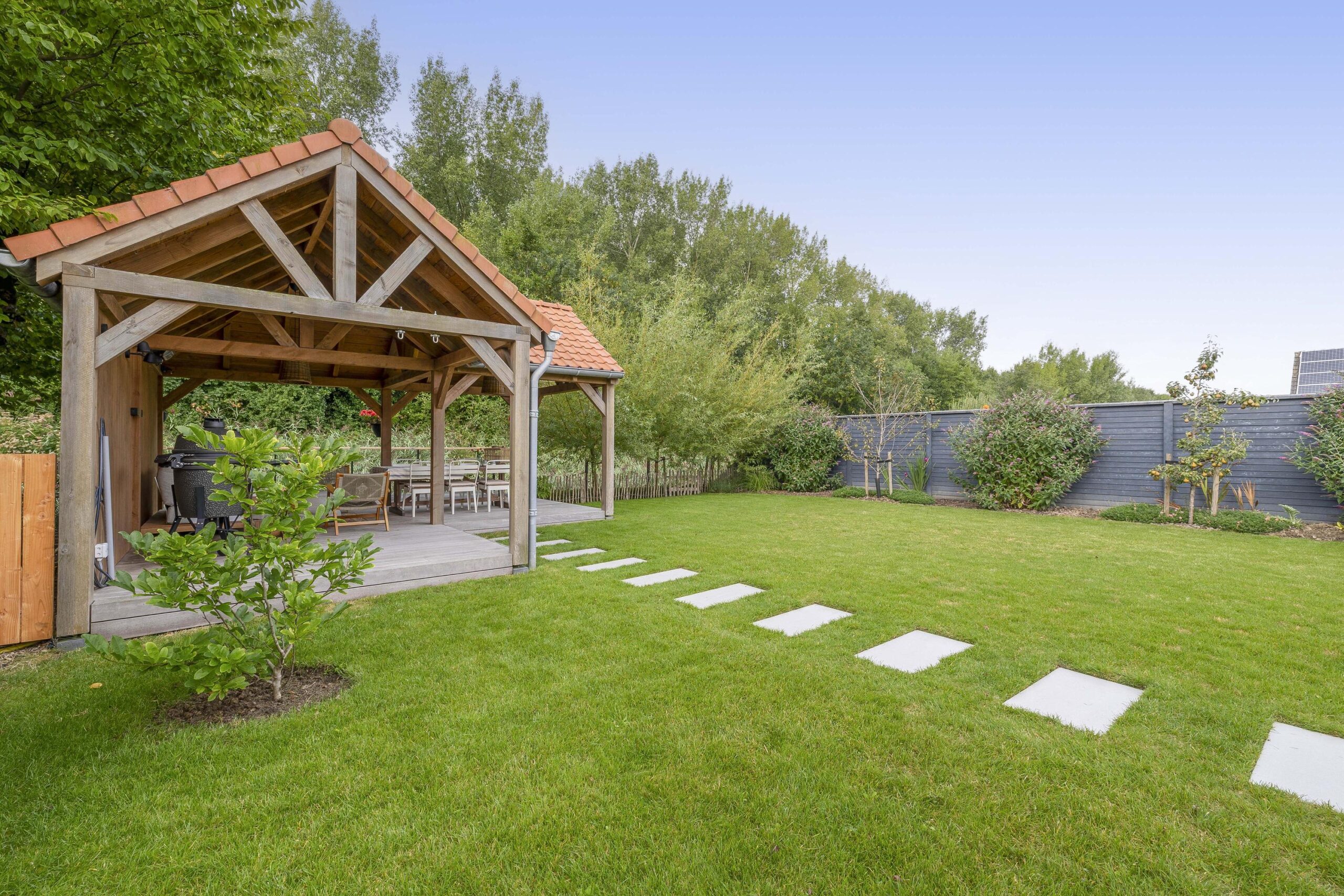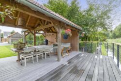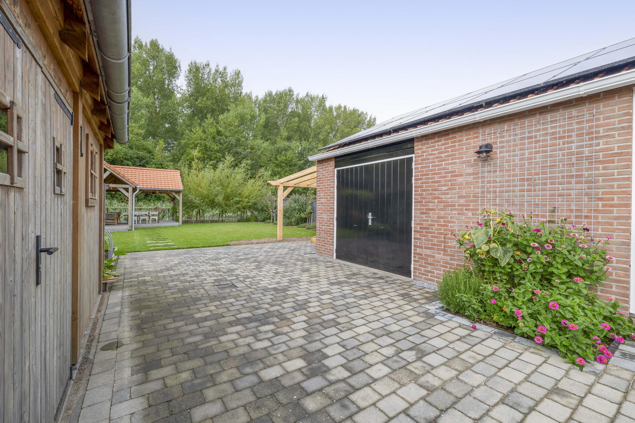 De ruime oprit geeft voldoende ruimte om je auto(‘s) op eigen terrein te parkeren. Middels een poort is de oprit afgescheiden van de zij- en achtertuin. Één van de grootste pluspunten van deze woning is de royale en goed onderhouden tuin. De achtertuin ligt op het westen en biedt voldoende ruimte voor de kinderen om te spelen, om te tuinieren, te loungen of te vertoeven in zowel klein als groot gezelschap. Bij het eerste voorjaarszonnetje kan je al lekker buiten zitten. Terwijl je ontspant in de zachte zonnestralen, wordt je getrakteerd op een vrolijk vogelconcert dat de natuur tot leven brengt. Een perfecte plek om volledig tot rust te komen en even te ontsnappen aan de dagelijkse drukte. Ben je liever actief buiten bezig en houdt je ervan om je eigen groenten en fruit te kweken? Een moestuin betekent een plek van voldoening. Achter in te tuin staat een fantastische overkapping welke grenst aan water en groen. Heerlijke avonden zijn hier gegarandeerd. Daarnaast zijn er ook een houten berging en garage beschikbaar.