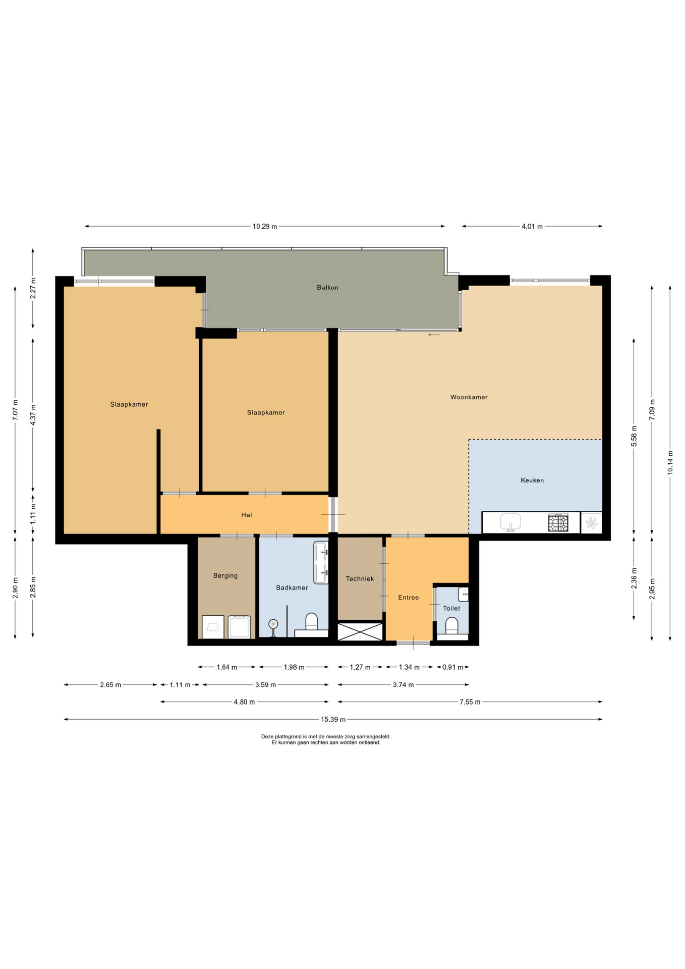 De entreehal van het appartement geeft toegang tot de techniekruimte, het toilet, de woon-/eetkamer en de keuken. De ruime woon-/eetkamer is voorzien van een een schuifpui naar het balkon. De schuifpui zorgt voor veel lichtinval. De open keuken is naar wens te realiseren.