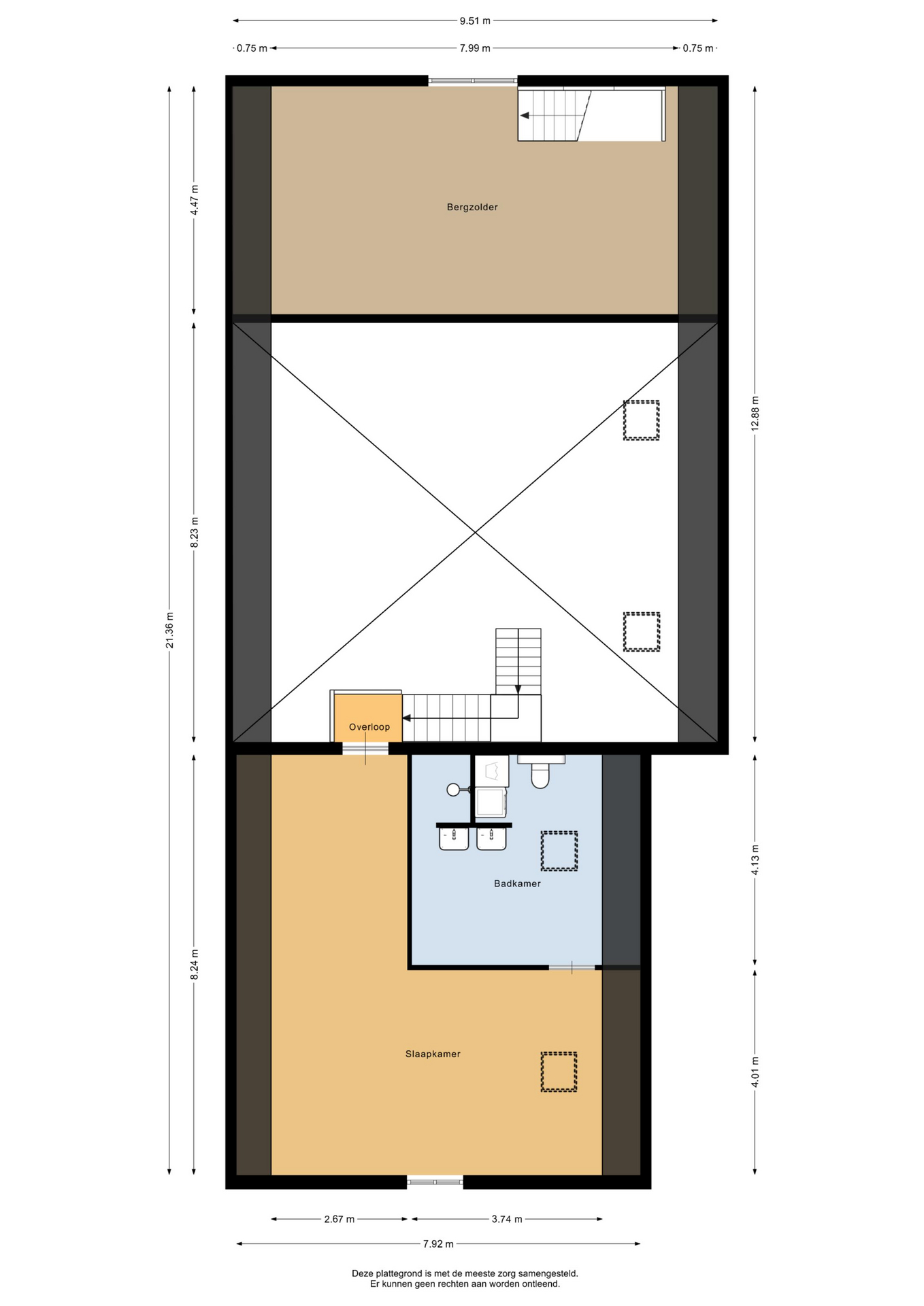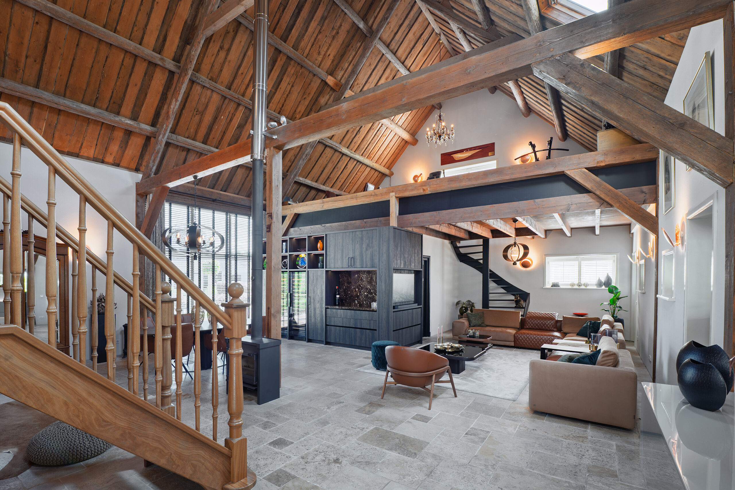 Aan de andere zijde van de woonkamer is middels een vaste trap de bergzolder bereikbaar.