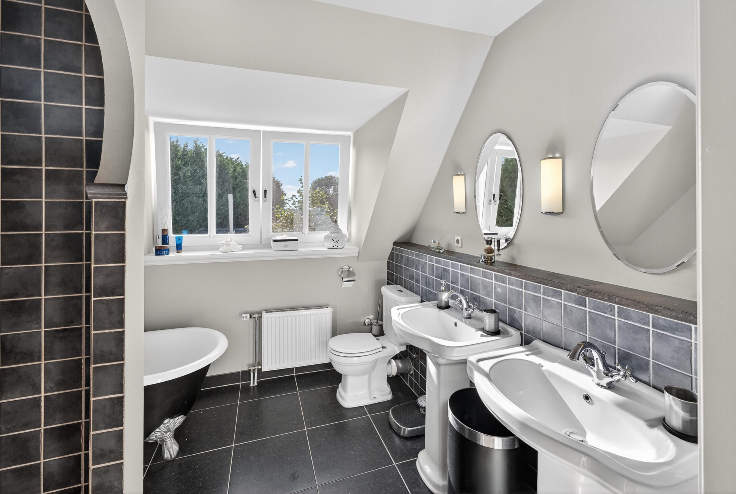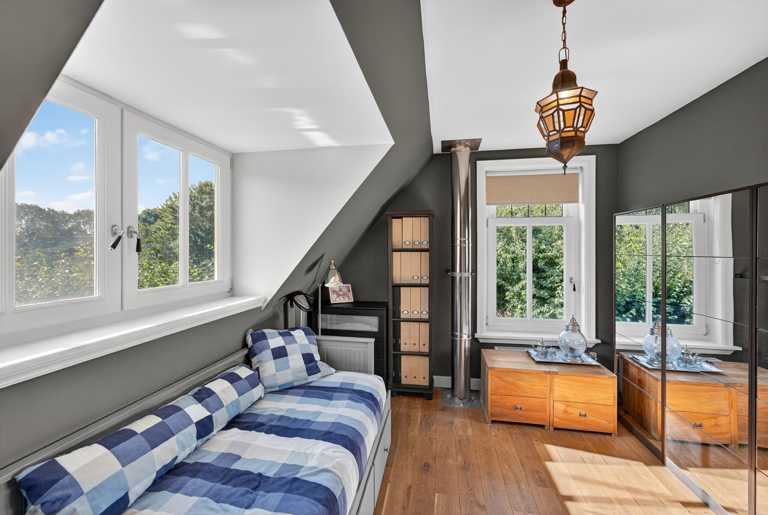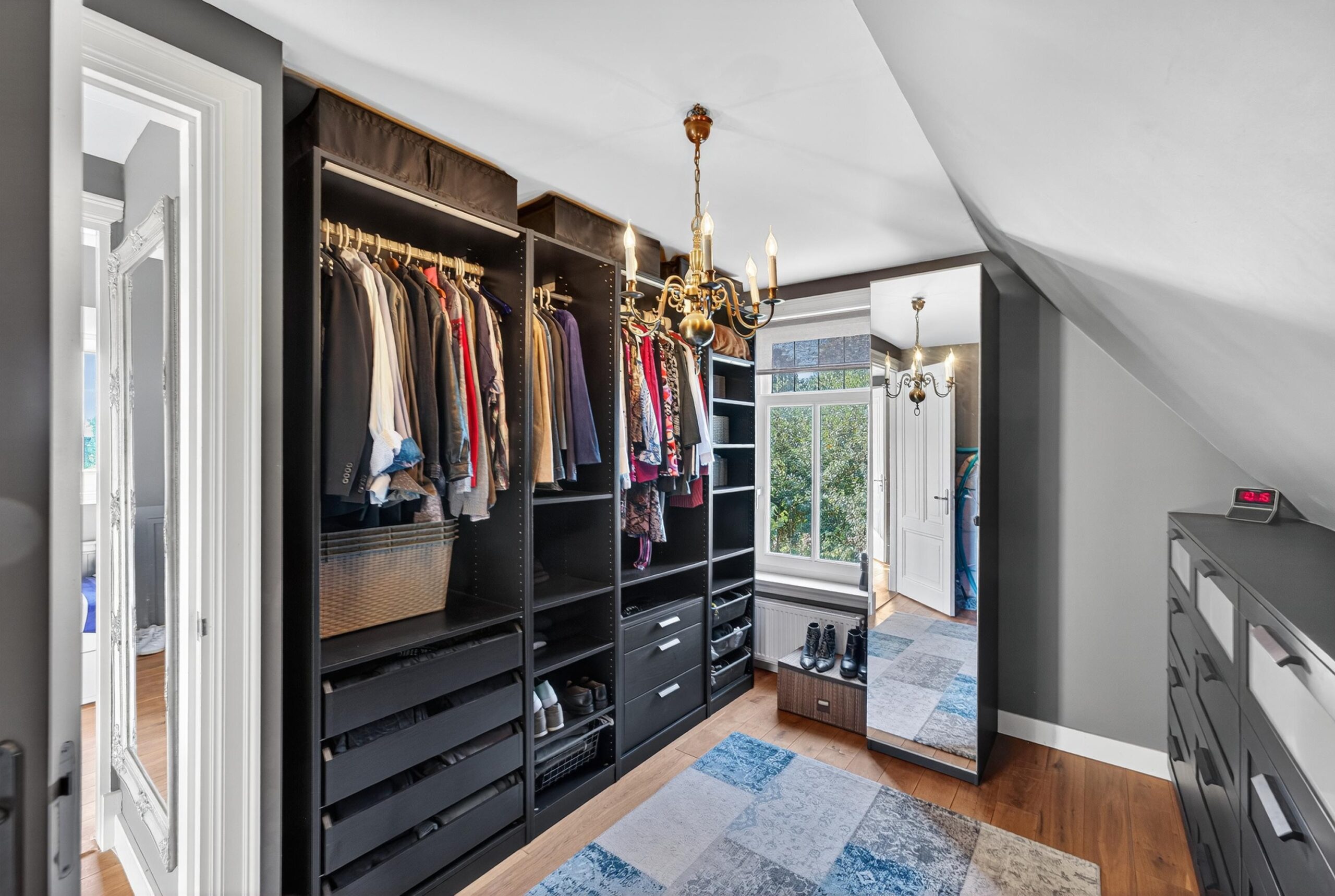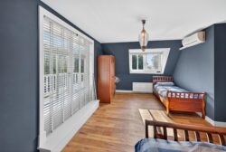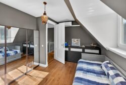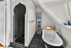 Op de eerste verdieping wachten drie sfeervolle slaapkamers, perfect voor een gezin of logees. De master bedroom geeft middels openslaande deuren toegang tot het balkon. De royale badkamer voelt als een privéspa: een vrijstaand ligbad om in weg te dromen, een dubbele wastafel, een ruime inloopdouche en een toilet, met vloerverwarming die een behaaglijke intimiteit toevoegt. De gehele eerste verdieping is voorzien van duurzame eikenhouten vloerdelen. Vanaf de overloop leidt een vlizotrap naar de bergzolder.