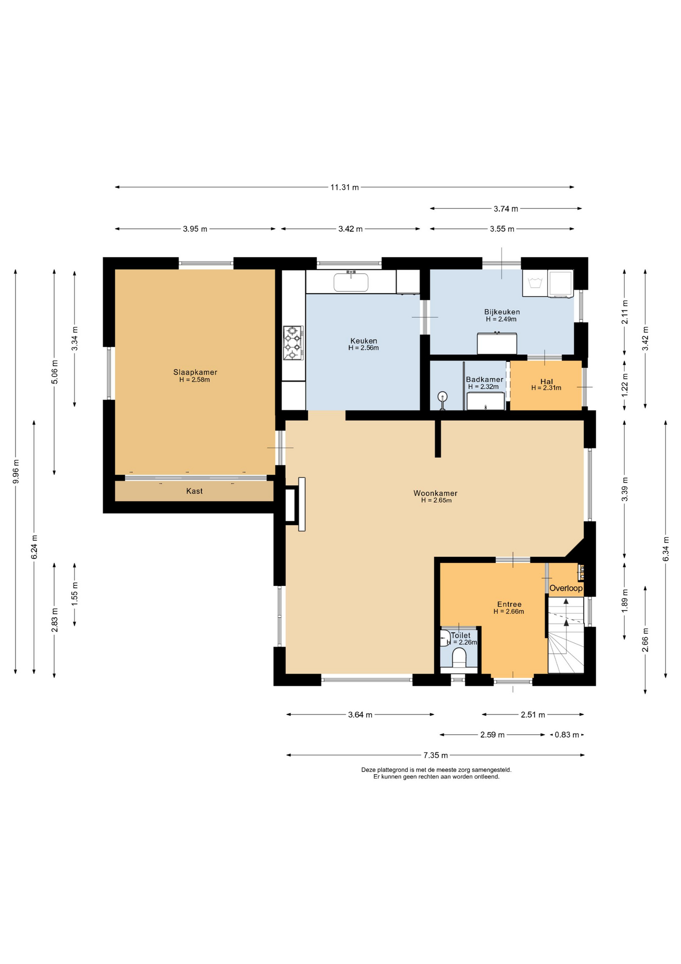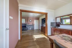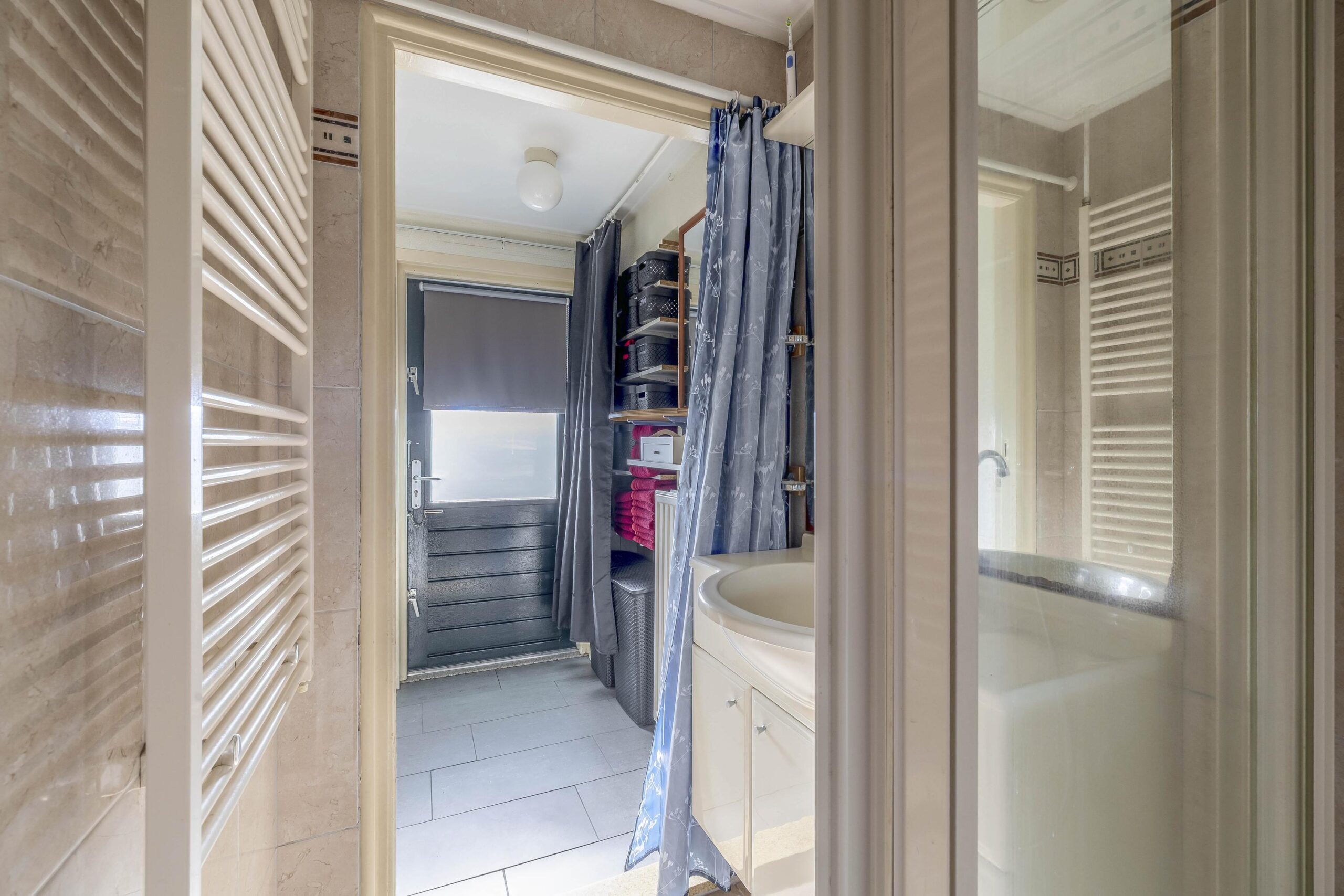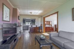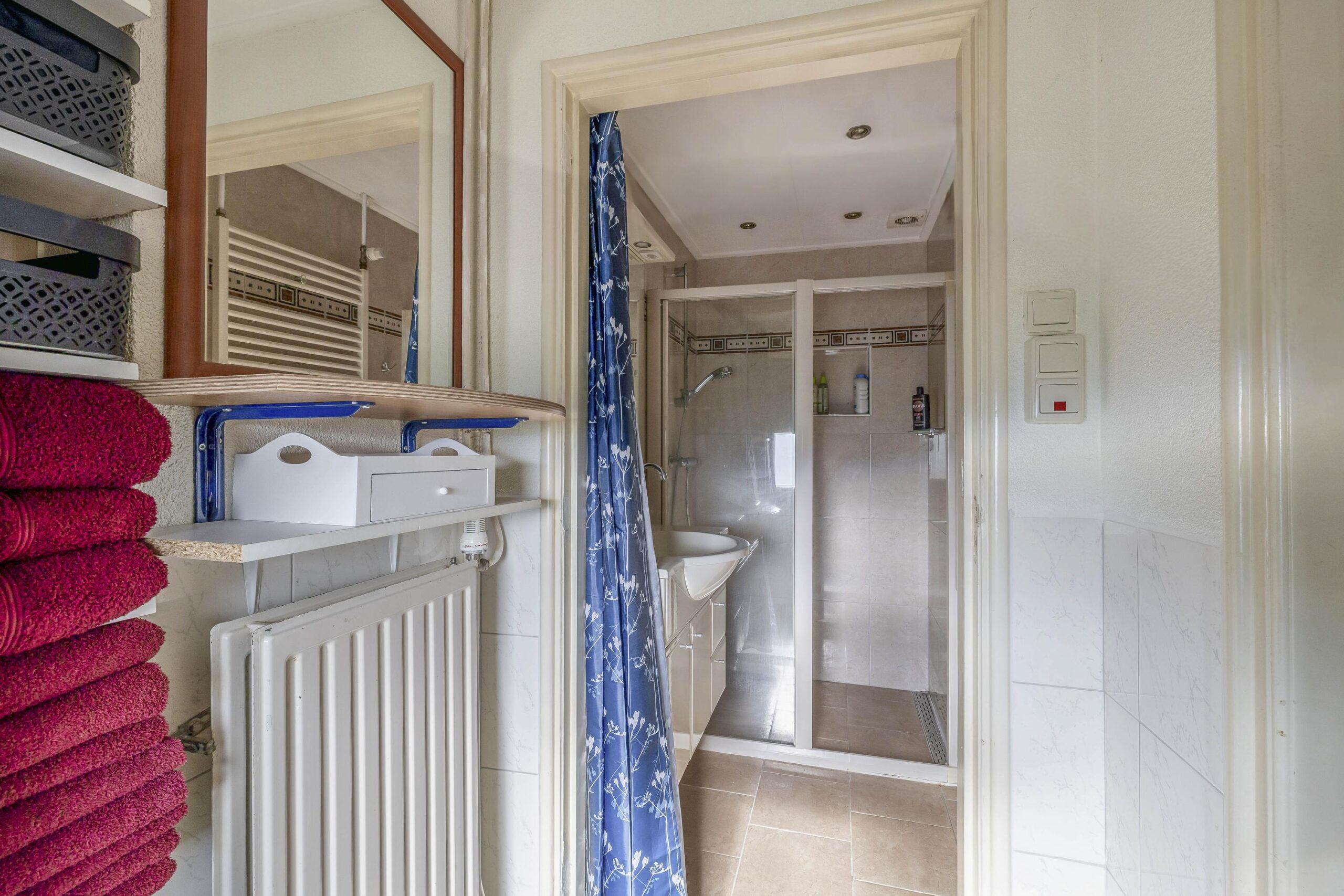 Via de ruime oprit bereikt u de voordeur en stapt u binnen in de entreehal met toilet en meterkast. Vanuit hier komt u in de woon- en eetkamer, waar de schouw met open haard direct warmte en gezelligheid toevoegt. Het is een ruimte die uitnodigt tot lange avonden samen, met het zachte knisperen van het vuur op de achtergrond. Grenzend aan de woonkamer vindt u de open keuken, compleet uitgerust met een gaskookplaat, afzuigkap, combi-oven en vaatwasser. Koken wordt hier een plezier, met genoeg ruimte om samen aan de slag te gaan, terwijl de vloerverwarming voor extra comfort zorgt. Aangrenzend vindt u de praktische bijkeuken met aansluitingen voor het witgoed en via de hal een directe doorgang naar buiten. Vanuit dezelfde hal bereikt u de badkamer, die is ingericht met een douche, een wastafelmeubel, een designradiator en eveneens vloerverwarming. Op de begane grond bevindt zich bovendien een fijne slaapkamer, uitgerust met een mooie inbouwkast die zorgt voor volop bergruimte. Een kamer die rust en gemak uitstraalt, perfect voor gelijkvloers te wonen.