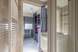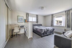 Vanaf de overloop zijn drie slaapkamers bereikbaar, terwijl de vierde slaapkamer via de master bedroom te betreden is. Deze extra kamer kan ook eenvoudig worden omgetoverd tot een luxe walk-in closet. De andere slaapkamer aan de achterzijde biedt toegang tot het dak – een heerlijke plek om rustig de dag te beginnen met een kop koffie en uitzicht over de omgeving. Daarnaast is er vanaf de overloop via een vlizotrap toegang tot de vliering, ideaal voor extra bergruimte en het netjes opbergen van alles wat je niet dagelijks nodig hebt.