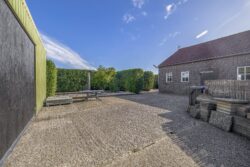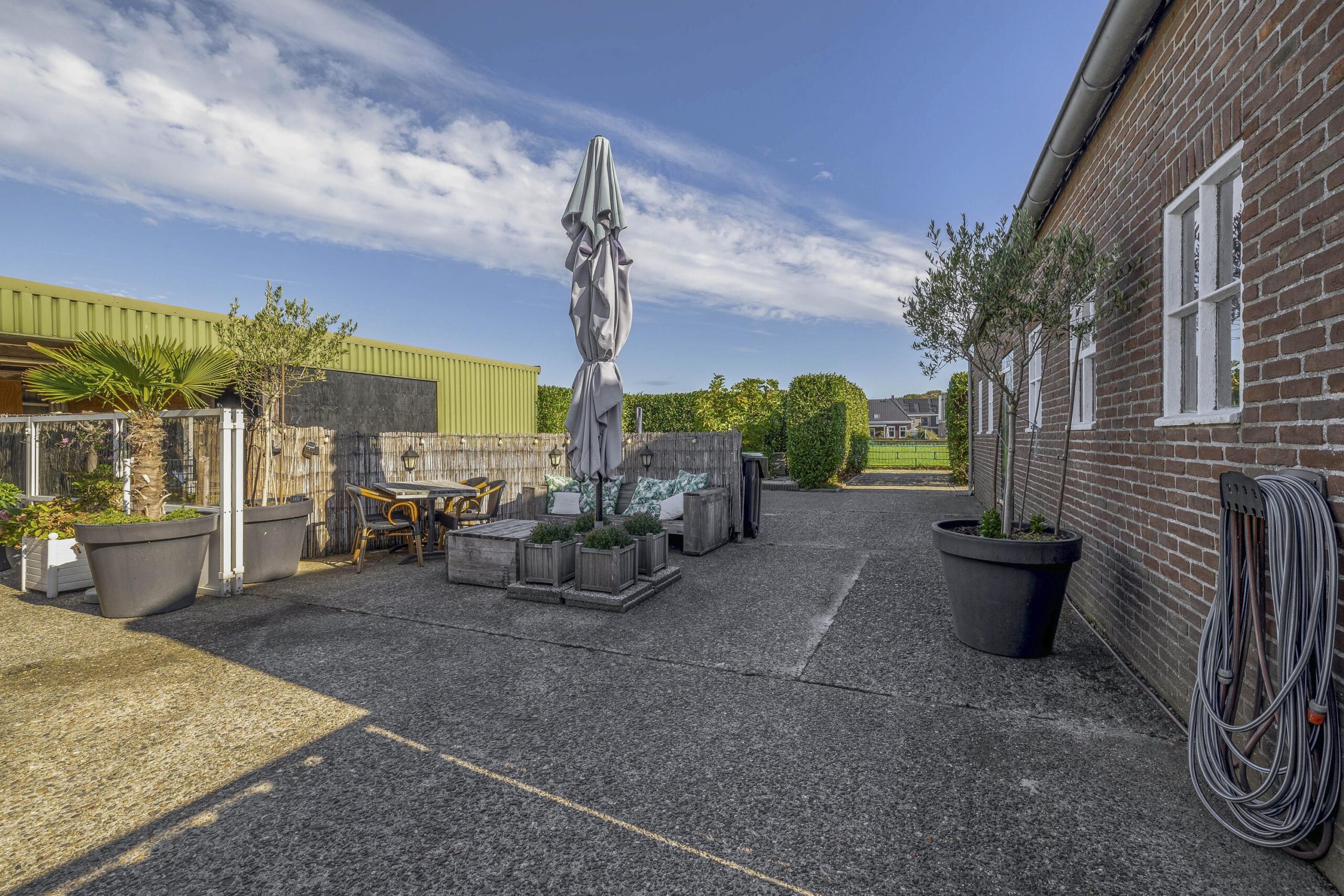 De omgeving rondom de woning voelt ruim en uitnodigend aan, met een gazon en bomen. Via de royale oprit, waar u met gemak uw auto op eigen terrein parkeert, bereikt u de garage. Twee openslaande deuren geven de garage een authentieke uitstraling, en binnen is er genoeg plek voor uw auto of om uw hobby’s tot leven te brengen. Achter in de garage vindt u bovendien twee handige inpandige bergingen, ideaal voor extra opbergruimte. Aan de achterzijde van de woning is een schuur gerealiseerd, met drie extra ruimtes en een royale overkapping, perfect voor opslag of creatieve invulling. De mogelijkheden zijn eindeloos om deze ruimte helemaal naar eigen wens in te richten en te benutten. Daarnaast is er altijd wel een fijn plekje in de zon of juist in de schaduw, perfect om heerlijk te ontspannen of gezellig met een groter gezelschap te genieten.