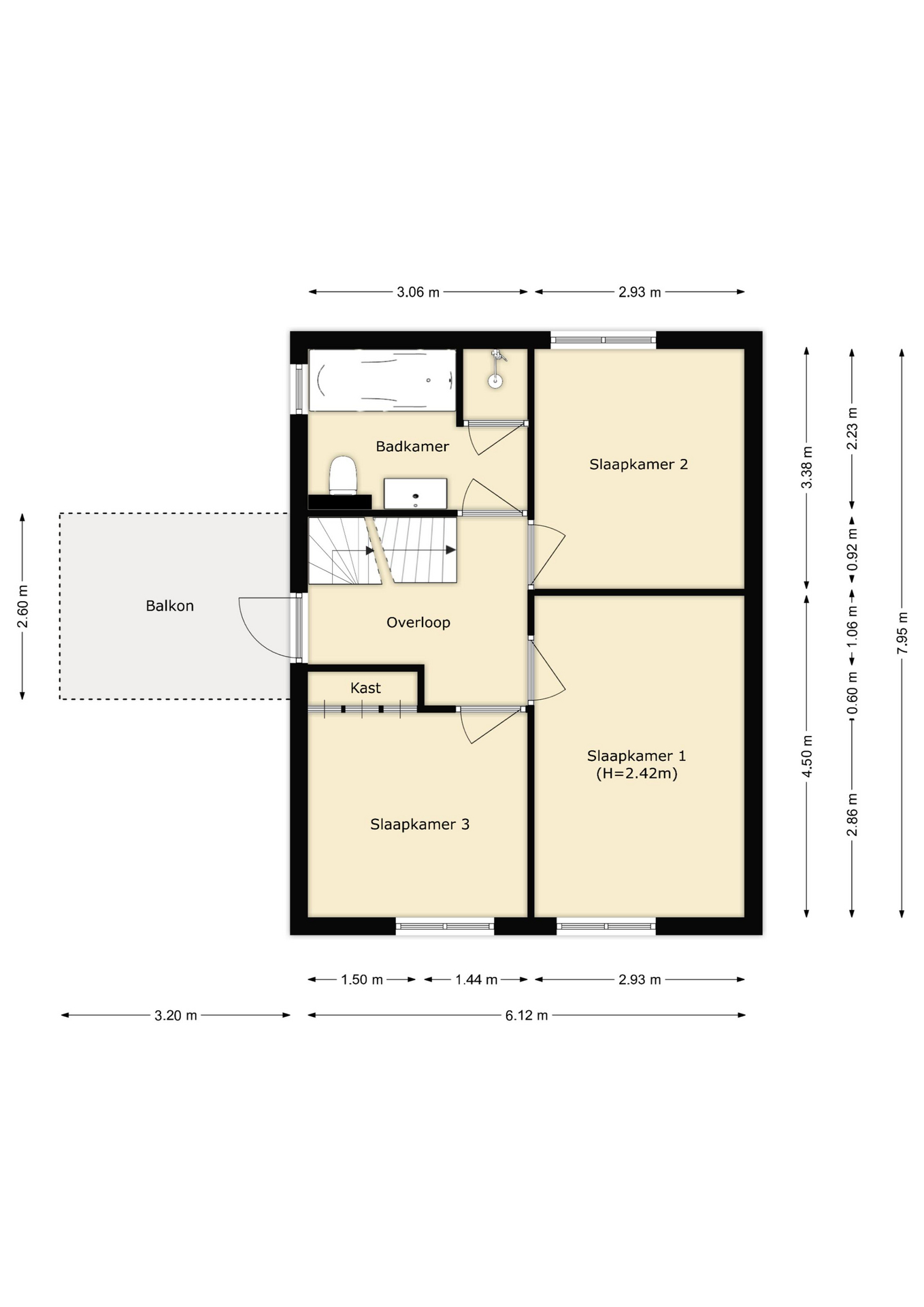 – Drie slaapkamers op de eerste verdieping
